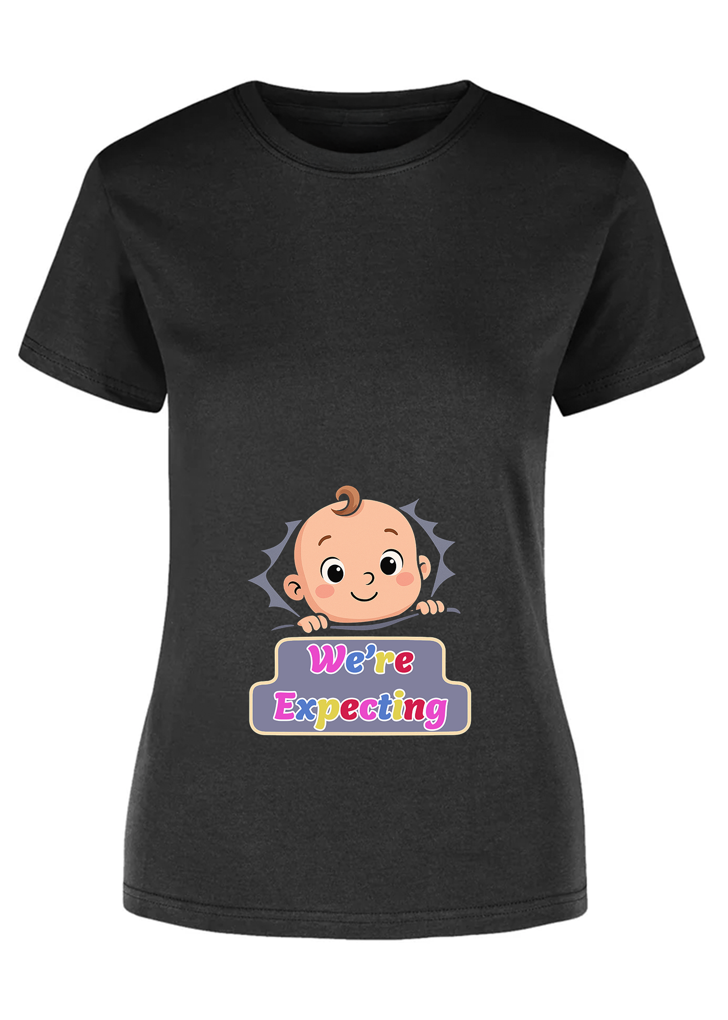 “We’re Expecting” Pregnancy Announcement T-Shirt for Women – Maternity Reveal Tee – Cute Baby Announcement Shirt