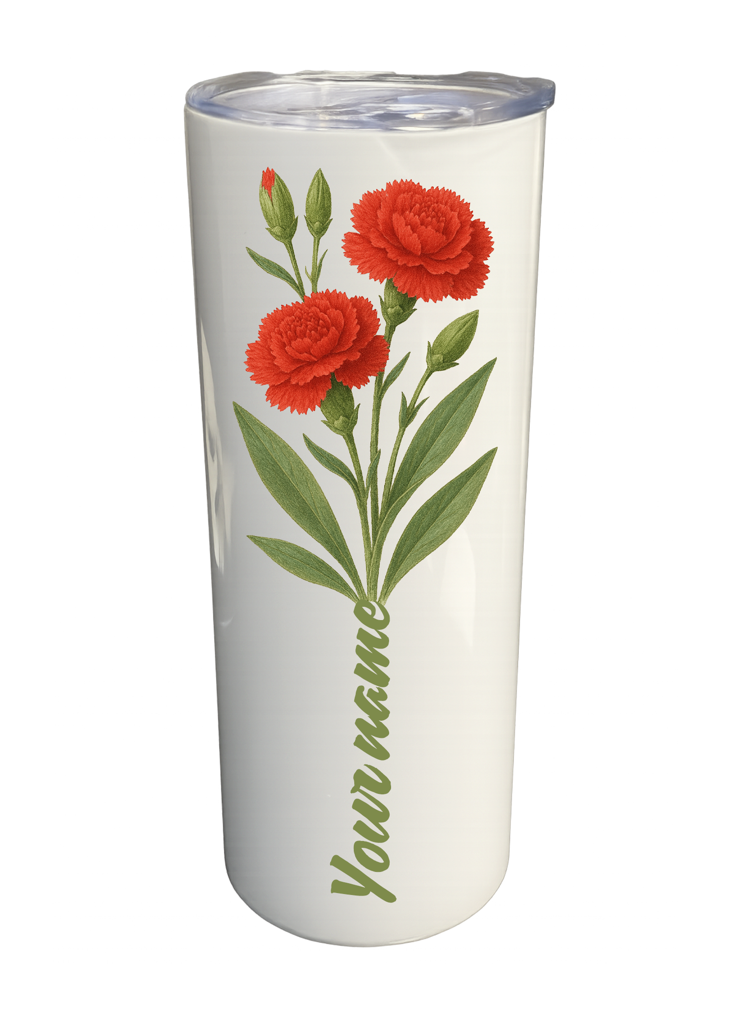 20 oz Insulated Stainless Steel Tumbler – Personalized “Carnations” Travel Mug – Custom Cup Gift