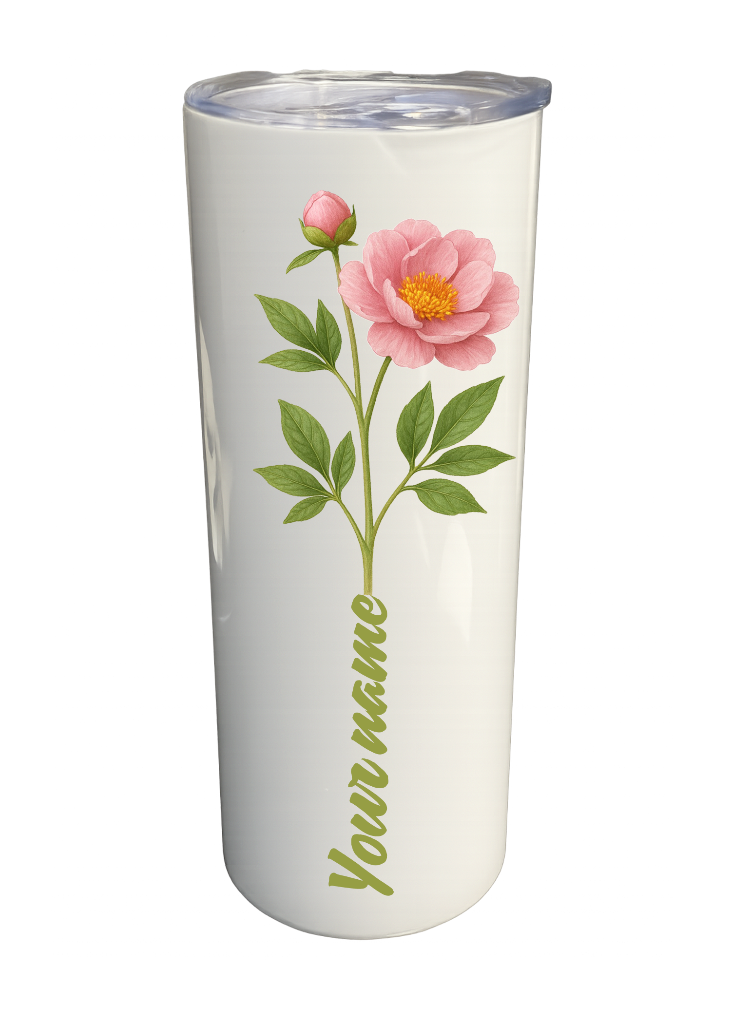 20 oz Insulated Stainless Steel Tumbler – Personalized “Peony” Travel Mug – Custom Cup Gift