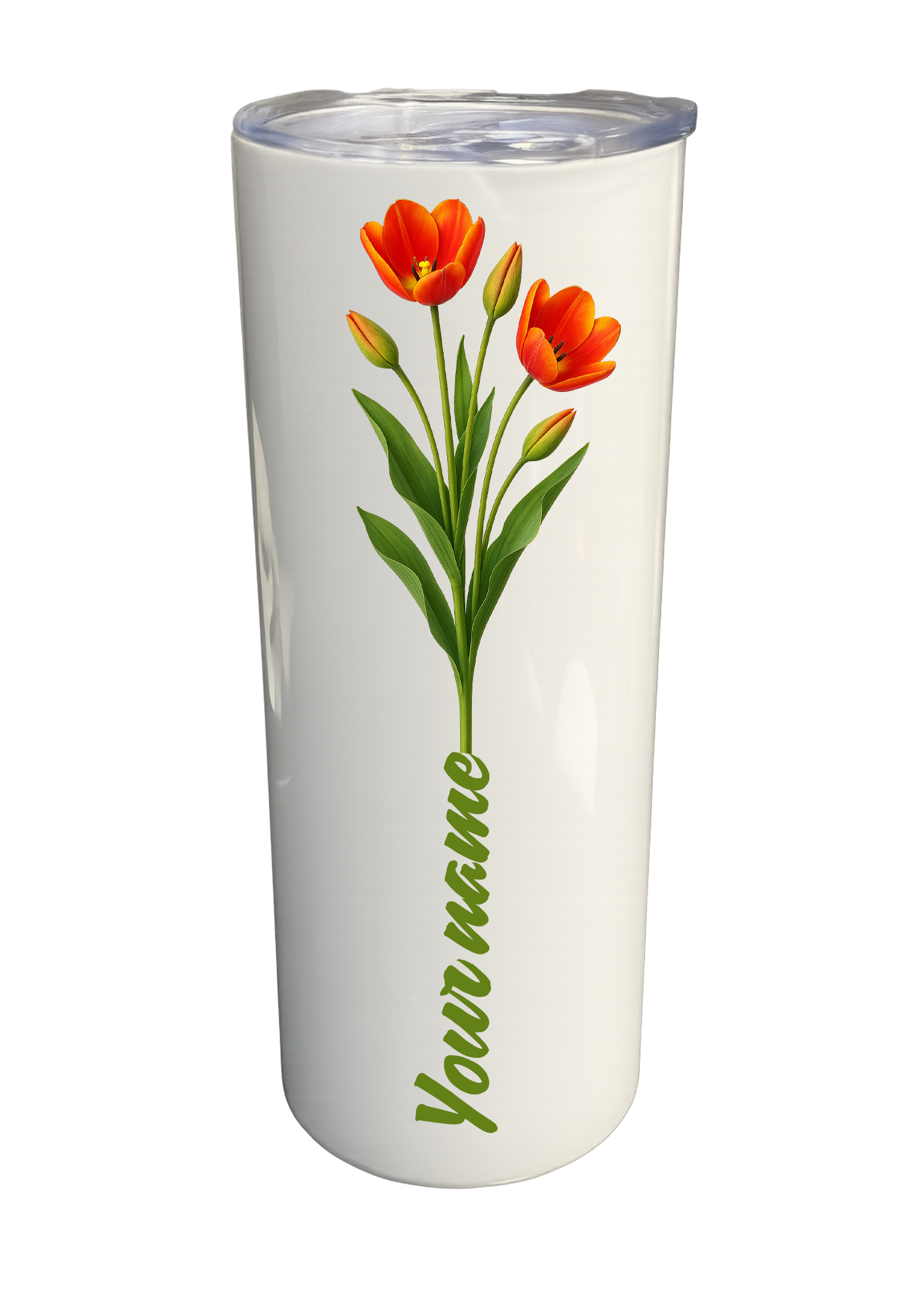 20 oz Insulated Stainless Steel Tumbler – Personalized “Tulips II” Travel Mug – Custom Cup Gift