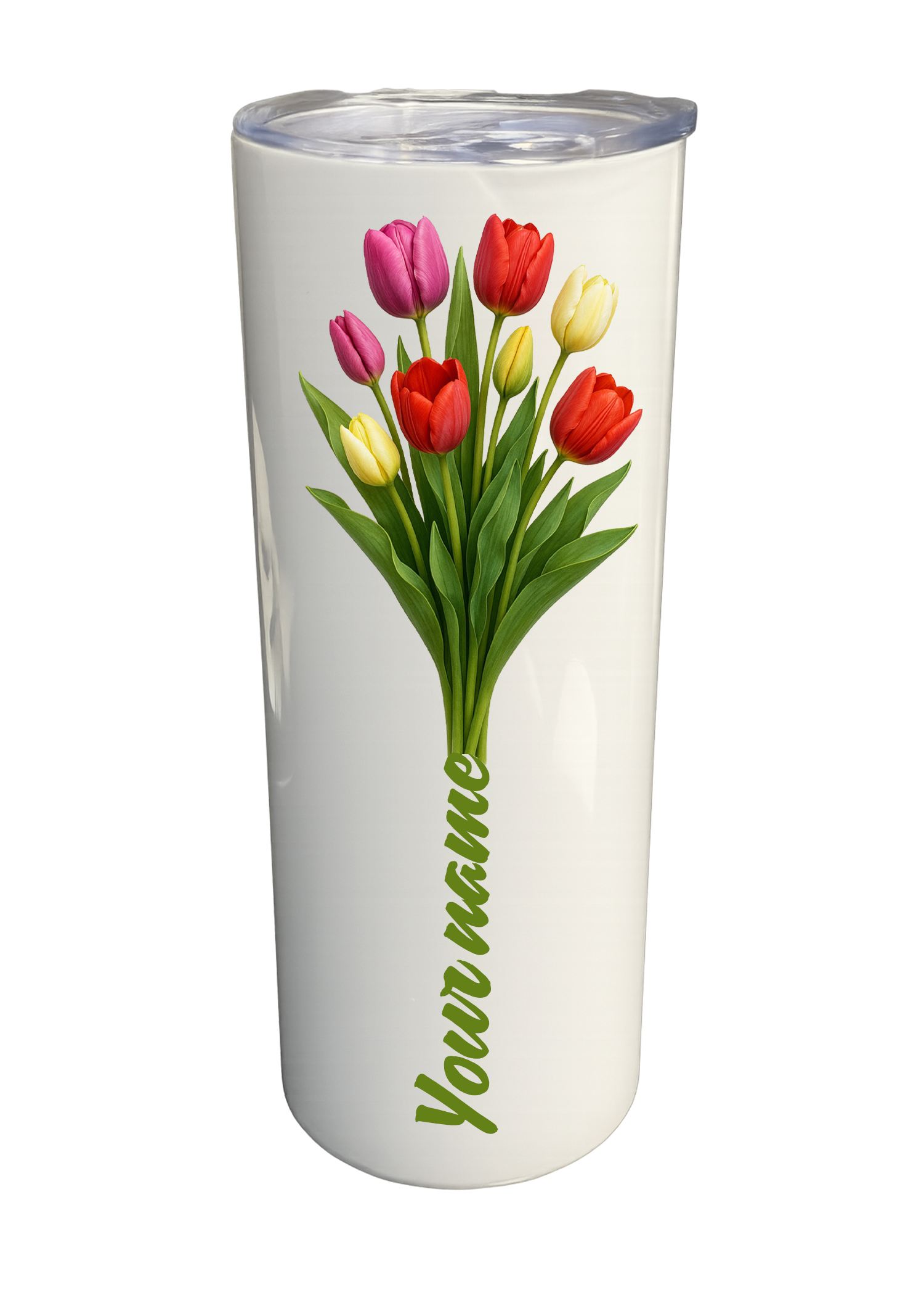 20 oz Insulated Stainless Steel Tumbler – Personalized “Tulips” Travel Mug – Custom Cup Gift