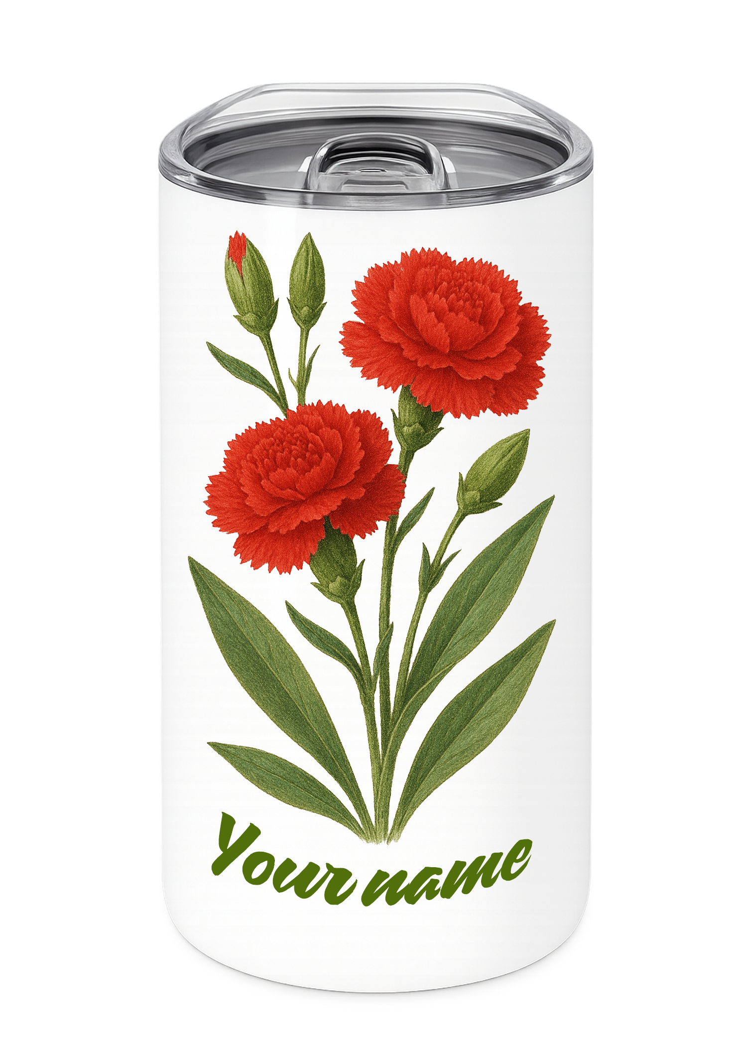 12 oz Insulated Stainless Steel Tumbler – Personalized “Carnations” Travel Mug – Custom Cup Gift