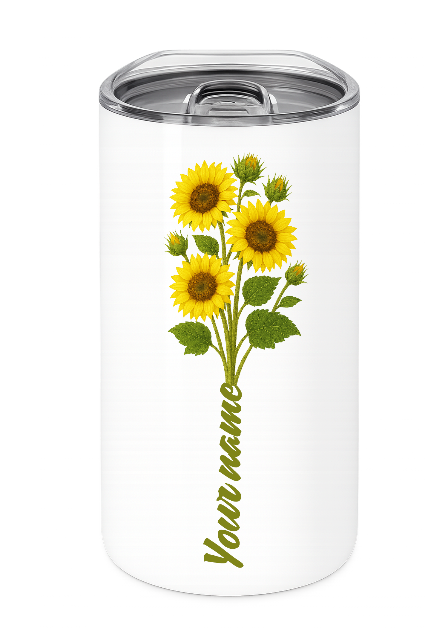 12 oz Insulated Stainless Steel Tumbler – Personalized “Sunflower” Travel Mug – Custom Cup Gift